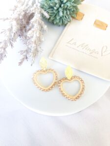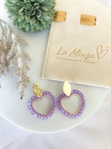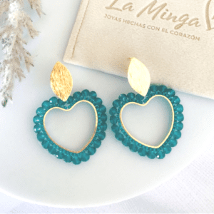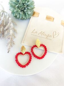 Aros tejidos en Delicas Miyuki y Murano con forma de corazón.